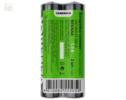 Батарейка солевая мизинчиковая (R03) 2 шт. в пленке. Предназначены для использования в приборах с малым энергопотреблением: настенных часах, пультах дистанционного управления, радиоприемниках и т.д. Соответствуют ГОСТ12.2.007.12, ГОСТ 24721, ГОСТ Р МЭК 60086-1 (IEC 60086-1), ГОСТ 2583.