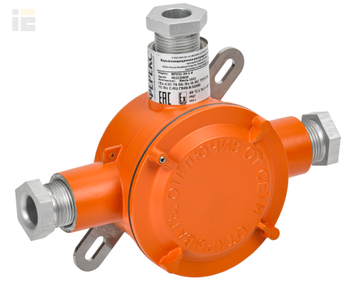 Взрывозащищенные распределительные коробки ВРК предназначены для защиты соединений и разветвлений гибких кабелей в электрических цепях, на объектах в различных отраслях промышленности с высоким риском взрыва и пожара, в зонах опасных по воспламенению горючих газовоздушных смесей или пыли. Коробки поставляются с кабельными вводами и комплектами для кабелей диаметром от 6,0 до 16 мм. Маркировка взрывозащиты по газу: 1Ex Db IIC T6 Gb. Маркировка взрывозащиты по пыли: Ex Tb IIIC T75 C Db.
