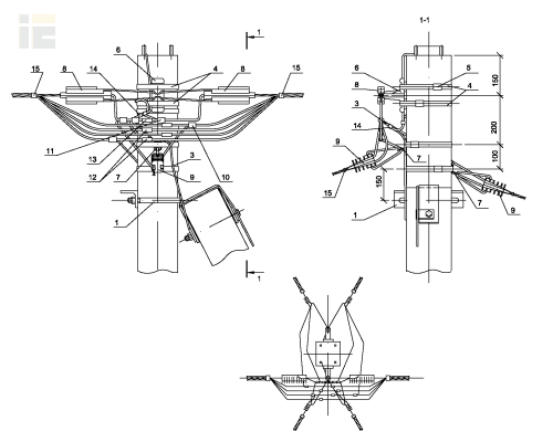 В составе проекта разработаны железобетонные опоры ВЛИ 0,4кВ в соответствии с требованиями ПУЭ 7 издания. Одно и двухцепные опоры могут применяться в I-IV районах по ветру и гололёду. Опоры предназначены для применения в застроенной и незастроенной местностях. На всех типах опор предусмотрена возможность ответвления к вводам в здания в одну и в две стороны от ВЛ двух, четырех и 2х2 жил СИП.