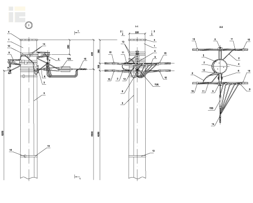 В составе проекта разработаны деревянные опоры ВЛИ 0,4кВ в соответствии с требованиями ПУЭ 7 издания. Опоры ВЛИ 0,4кВ разработаны на базе деревянных стоек длиной 9,5м, 11м, 12м. Одно и двухцепные опоры могут применяться в I-IV районах по ветру и гололёду. На всех типах опор предусмотрена возможность ответвления к вводам в здания в одну и в две стороны от ВЛ двух, четырех и 2х2 жил СИП. Опора ПОд161 устанавливается в случаях, когда требуется выполнять повторные заземления и заземления для защиты от атмосферных перенапряжений.