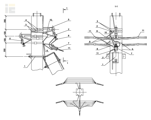 В составе проекта разработаны железобетонные опоры ВЛИ 0,4кВ в соответствии с требованиями ПУЭ 7 издания. Одно и двухцепные опоры могут применяться в I-IV районах по ветру и гололёду. Опоры предназначены для применения в застроенной и незастроенной местностях. На всех типах опор предусмотрена возможность ответвления к вводам в здания в одну и в две стороны от ВЛ двух, четырех и 2х2 жил СИП. Максимально допустимый угол поворота трассы ВЛ до 30 градусов.