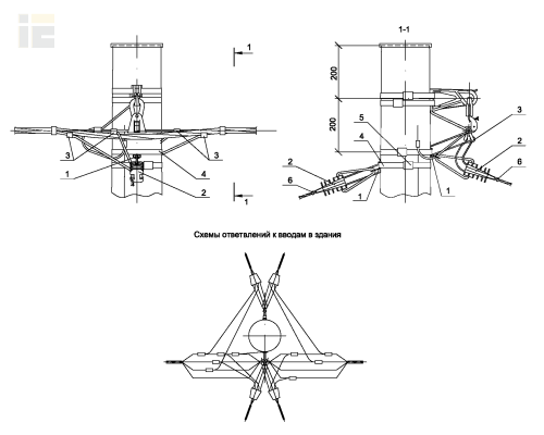 Ответвления к вводам в здания от одноцепной промежуточной опоры.