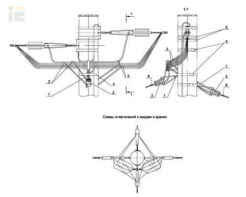 Ответвления к вводам в здания от одноцепной анкерной опоры.