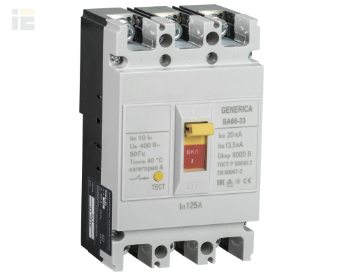 Автоматические выключатели ВА66 GENERICA предназначены для проведения тока в нормальном режиме и отключения тока при коротких замыканиях, перегрузке, а также для оперативных включений и отключений участков электрических цепей. Рассчитаны на эксплуатацию в электроустановках с номинальным рабочим напряжением до 400В и на номинальные токи от 16 до 250А.